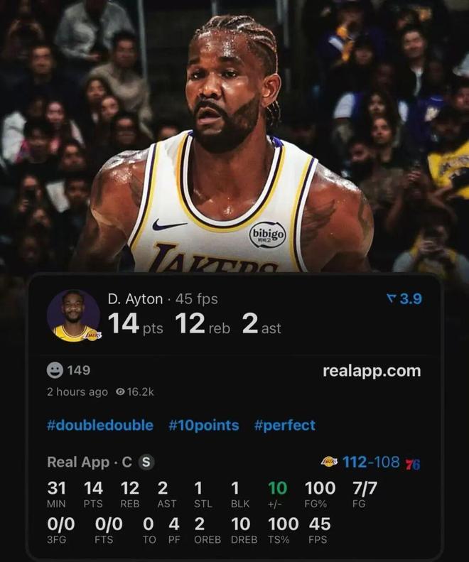 也以100%命中率得到兩雙,且沒有失誤