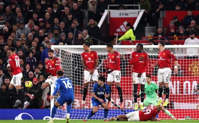 第77分鐘,B費(fèi)站在任意球前,一腳勢(shì)大力沉的射門直掛死角,3-3,老特拉福德沸騰了!