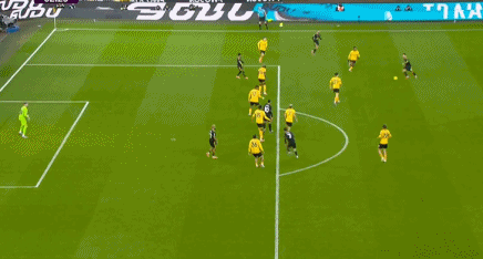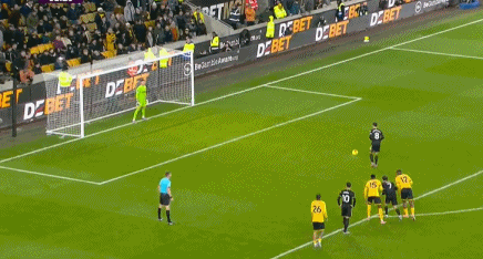 補時階段,狼隊沃爾費助攻貝勒加德將比分扳成1-1平手,雙方進入中場休息。