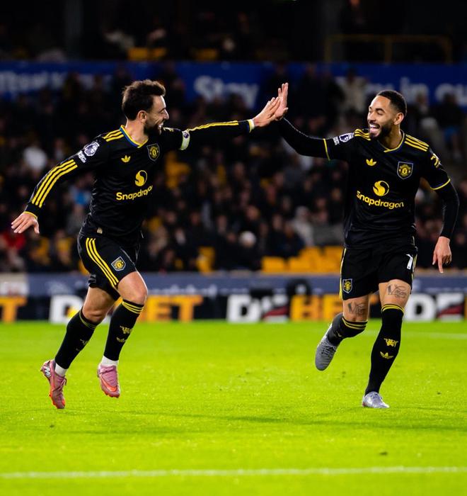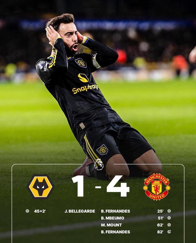 比賽一開始,曼聯(lián)就反客為主,率先主動發(fā)起進攻,第25分鐘,狼隊后場犯錯,庫尼亞斷球突入禁區(qū),橫傳找到了滑倒又急速起身的費爾南德斯,葡萄牙中場順勢將皮球送進網(wǎng)窩,曼聯(lián)1-0領先;